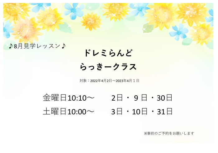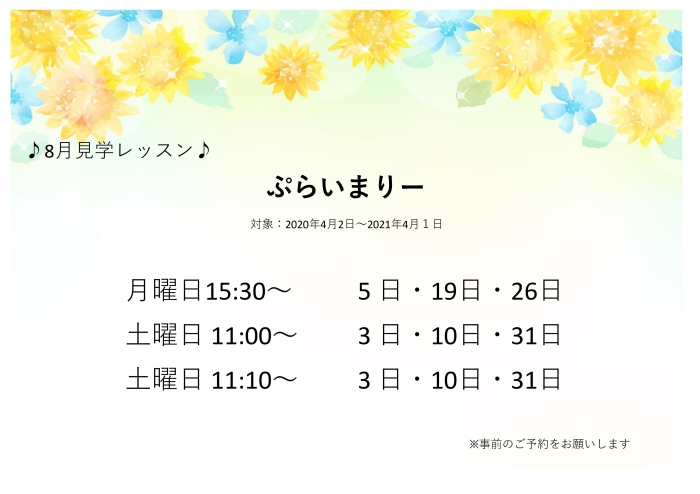 8月見学レッスン 8月のレッスン見学です。個人レッスンは随時体験受付中です。 2024.7.26 -