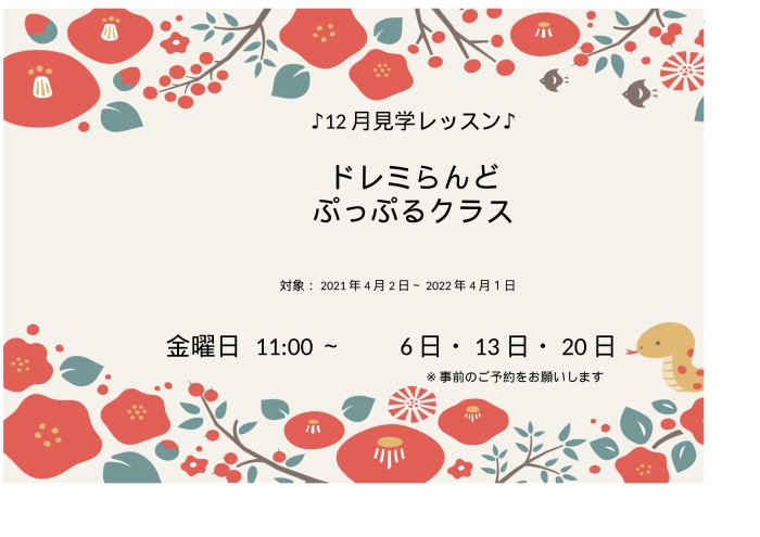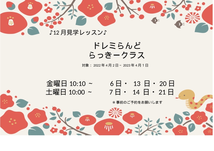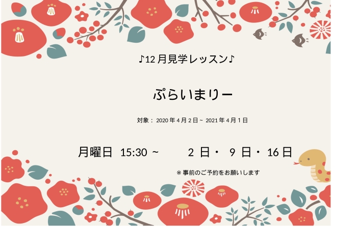 12月見学レッスン 12月のレッスン見学です。個人レッスンは随時体験受付中です。 2024.12.2 -